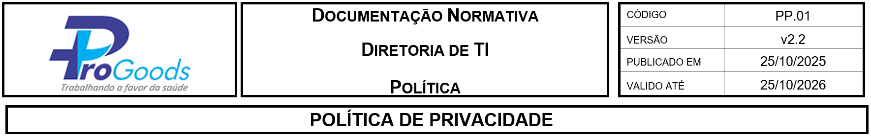 A PROGOOODS é uma farmácia virtual operando no varejo que abrange todos os estados brasileiros. Para atender a Lei Geral de Proteção de Dados (LGPD), a PROGOODS reforçou suas medidas de proteção de dados, deixando de forma transparente para todos os clientes como são tratadas suas informações. Desde a sua existência a PROGOODS zela pela garantia da segurança da informação e privacidade de dados, mantendo o sigilo necessário para as informações sensíveis. Os colaboradores da PROGOODS passam constantemente por treinamentos reforçando os valores éticos, segurança de dados e governança corporativa.